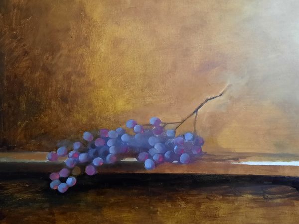 "I started visiting vineyards in Georgian villages to pick grapes. I was interested in conveying the taste and aroma of different sorts. The painting process brought me special pleasure and many childhood memories, as I grew up in the Kakheti region of Georgia, which is known for its wine-making history. I was fascinated by the way the light played with grapes and how they changed texture and aroma when exposed to the sun".